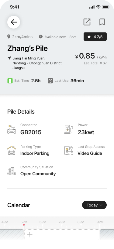Drivers can browse nearby piles with transparent details—price, ratings, reviews, and photos—so they can book with confidence instead of guessing.