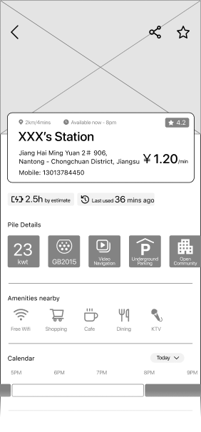 Wireframe cluttered the charging screen with multiple elements.
